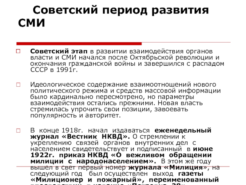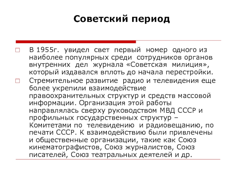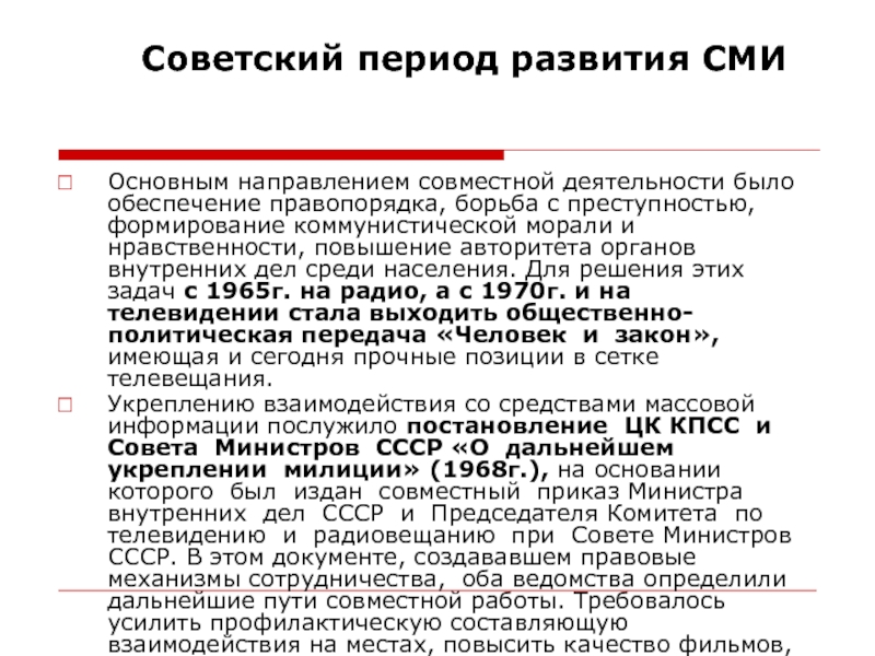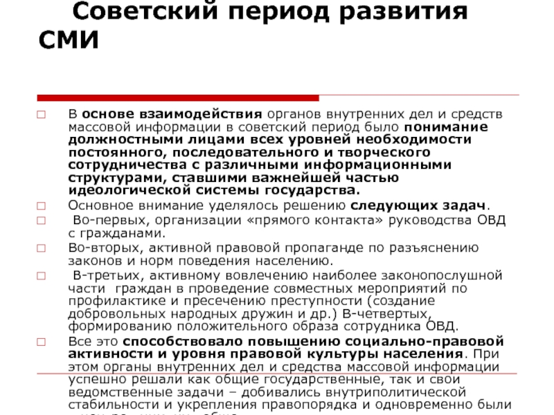 2. Характер взаимодействия МВД СССР и СМИ в советский период отечественной истории.