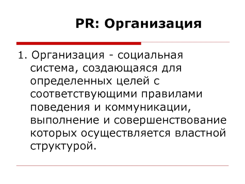 - социальная система, создающаяся для определенных целей с соответствующими правилами