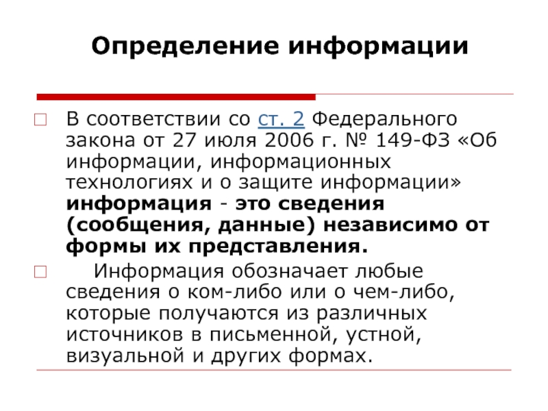 закона от 27 июля 2006 г. № 149-ФЗ «Об информации,