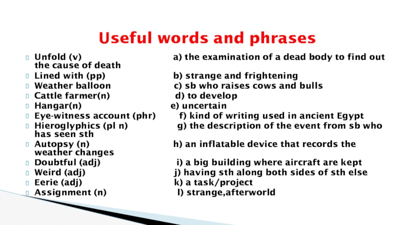 Hieroglyphics (pl n) g) the description of the event from sb who has seen sth