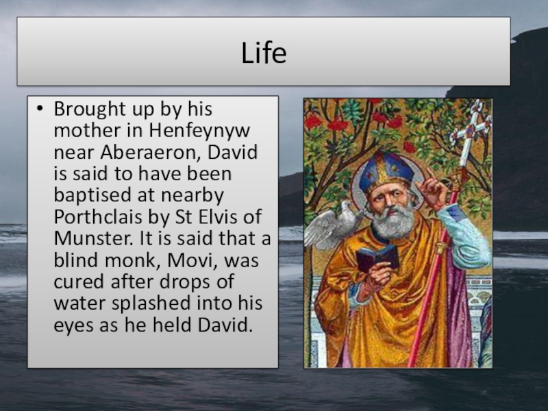 LifeBrought up by his mother in Henfeynyw near Aberaeron, David is said to have been baptised at