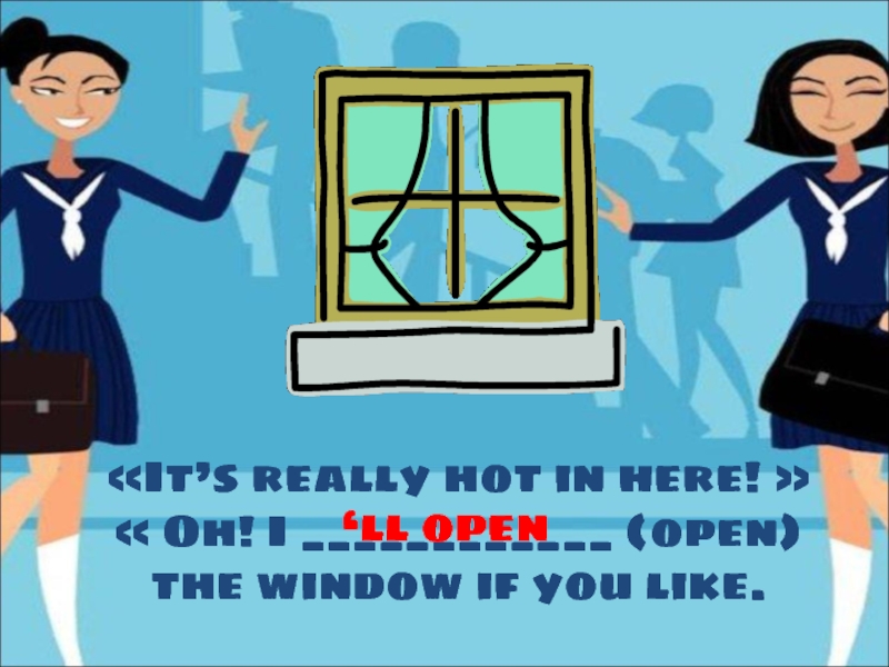 «It’s really hot in here! »« Oh! I ____________ (open) the window if you like.‘ll open