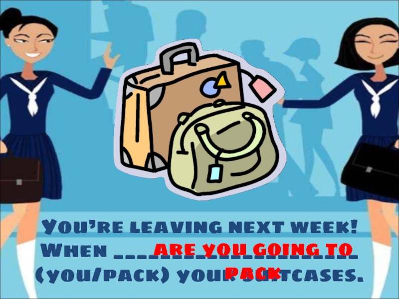 You’re leaving next week!When _____________________ (you/pack) your suitcases.are you going to pack