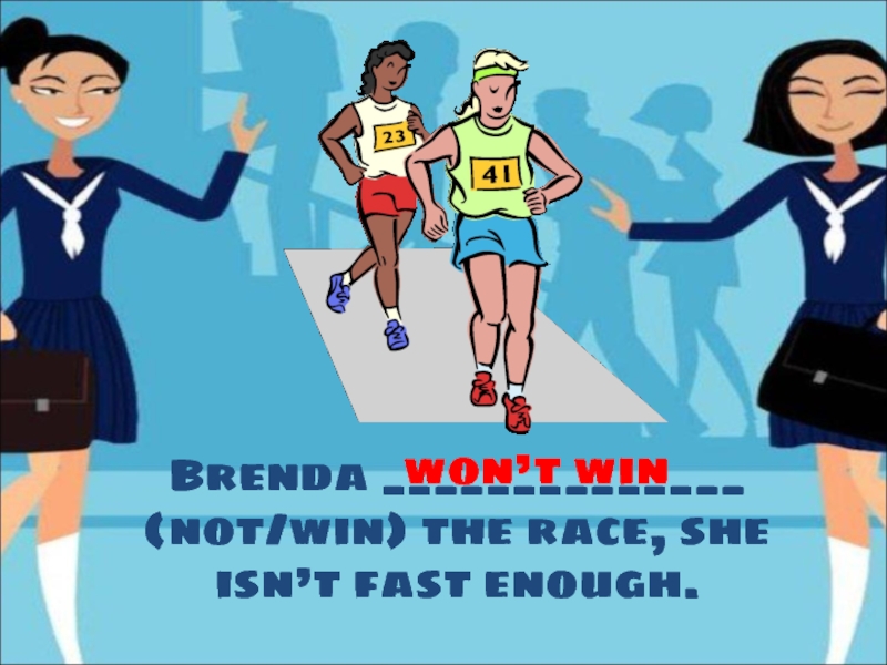 Слайд 15Brenda ______________ (not/win) the race, she isn’t fast enough.