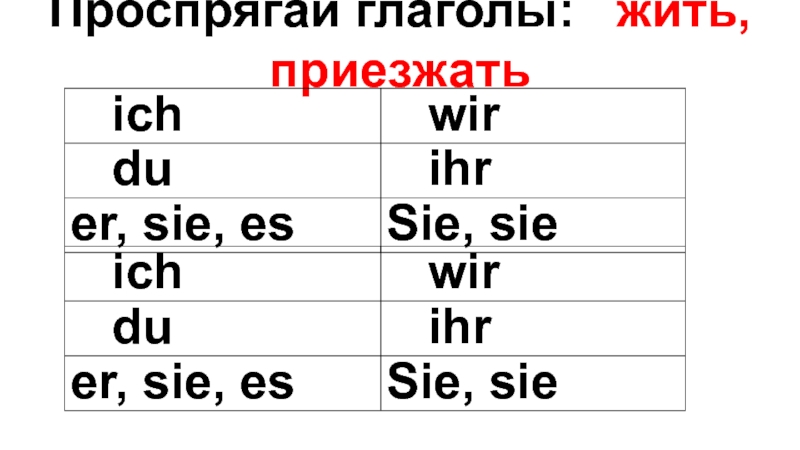 Слайд 12Проспрягай глаголы: жить, приезжать