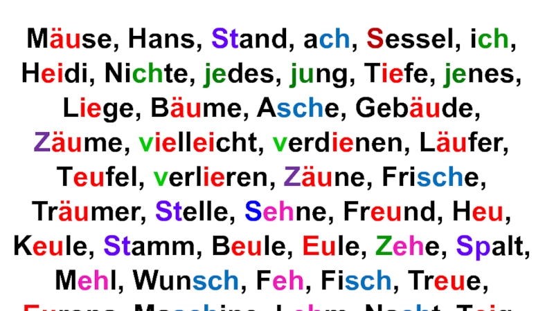 Слайд 2Mäuse, Hans, Stand, ach, Sessel, ich, Heidi, Nichte, jedes, jung,