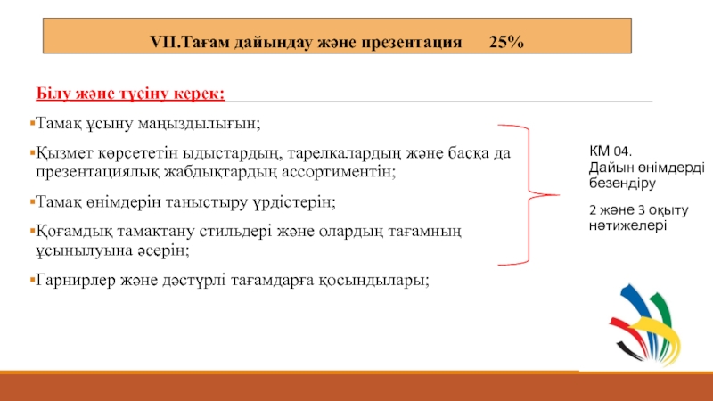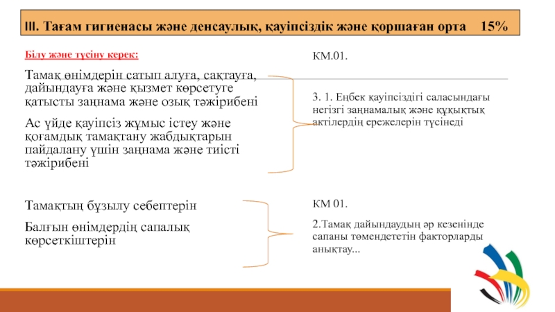 үздік халықаралық тәжірибе негізінде жатқан білімді, түсіну мен нақты дағдыларды