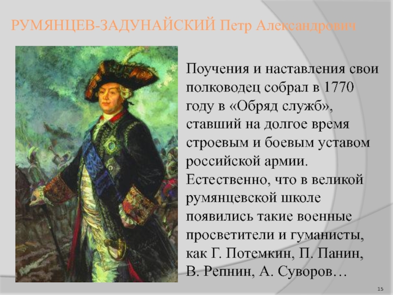 Слайд 15РУМЯНЦЕВ-ЗАДУНАЙСКИЙ Петр Александрович