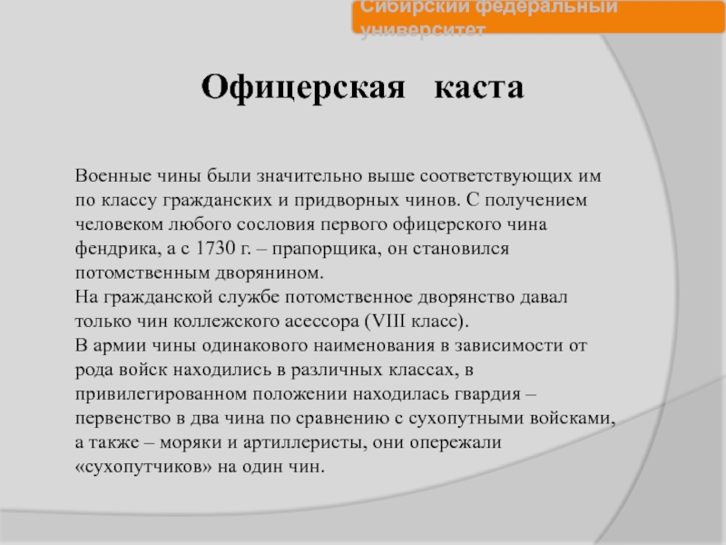 сословия первого офицерского чина фендрика, а с 1730 г. – прапорщика, он становился потомственным дворянином.