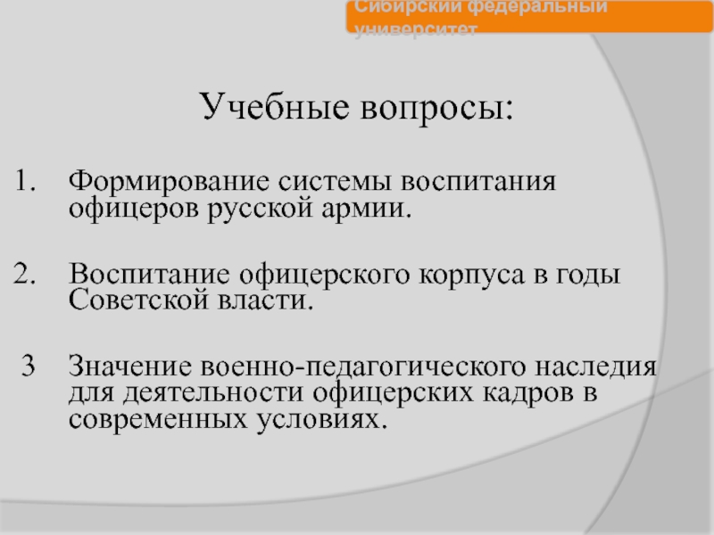 3  Значение военно-педагогического наследия для деятельности офицерских кадров