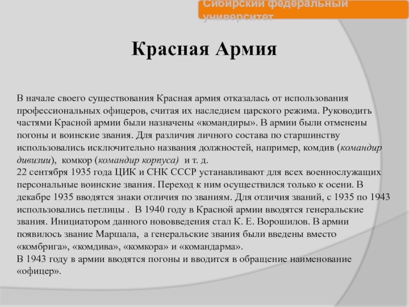 профессиональных офицеров, считая их наследием царского режима. Руководить частями Красной