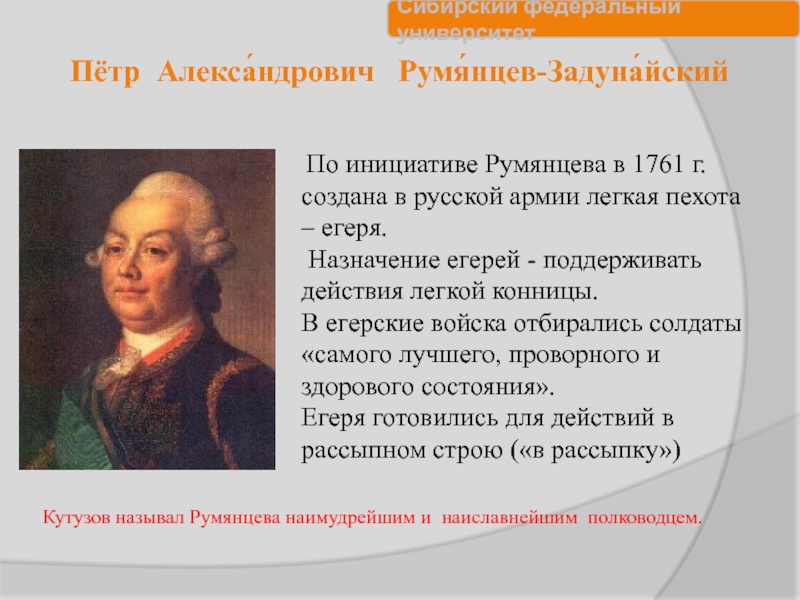 Слайд 14Пётр Алекса́ндрович  Румя́нцев-Задуна́йский