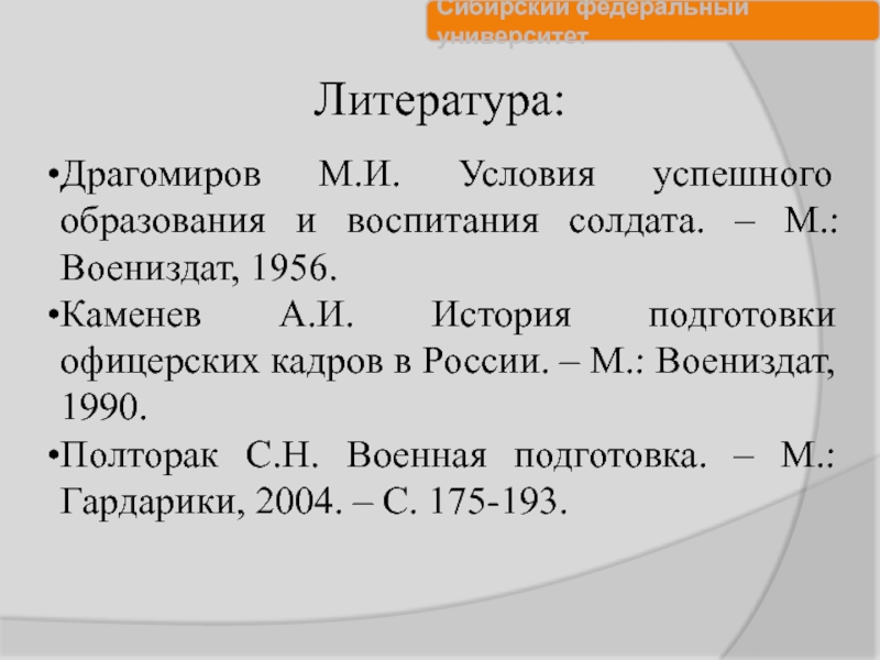 Полторак С.Н. Военная подготовка. – М.: Гардарики, 2004. – С. 175-193.