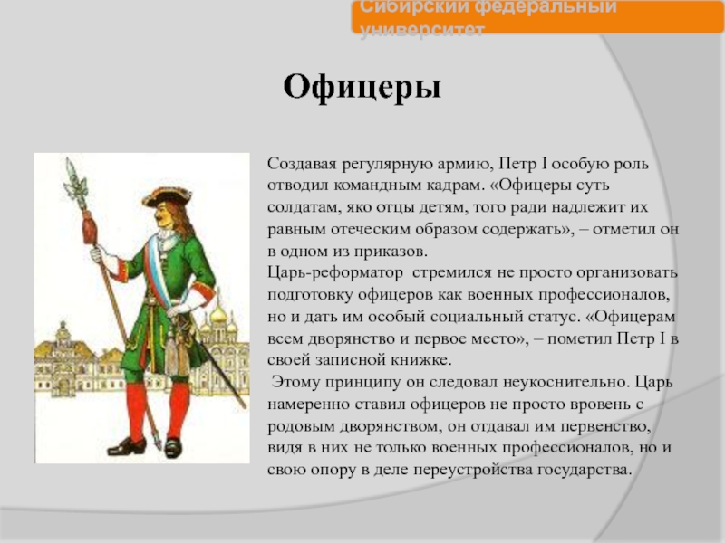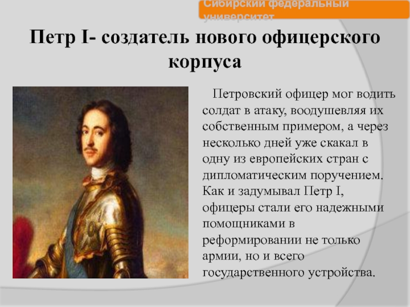Слайд 6Петр I- создатель нового офицерского корпуса