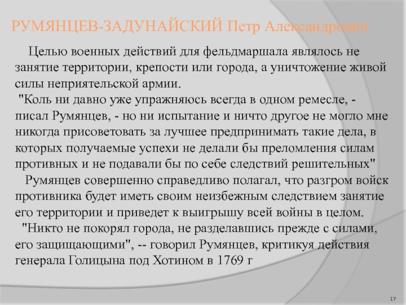 Слайд 17РУМЯНЦЕВ-ЗАДУНАЙСКИЙ Петр Александрович
