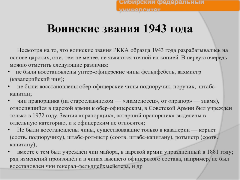 что воинские звания РККА образца 1943 года разрабатывались на основе