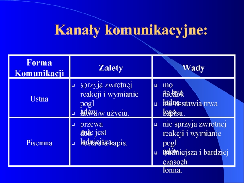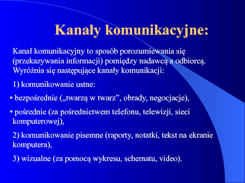 nadawcą a odbiorcą. Wyróżnia się następujące kanały komunikacji: