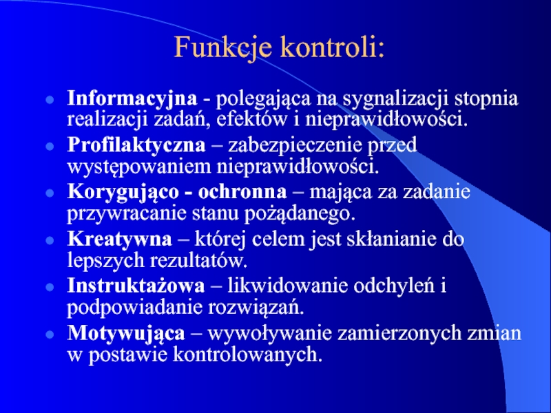 Motywująca – wywoływanie zamierzonych zmian w postawie kontrolowanych.