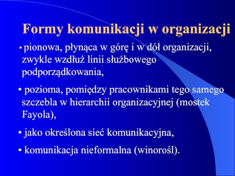 pracownikami tego samego szczebla w hierarchii organizacyjnej (mostek Fayola),