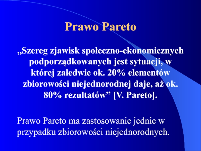 Prawo Pareto ma zastosowanie jednie w przypadku zbiorowości niejednorodnych.
