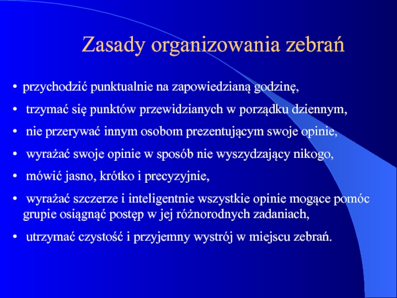utrzymać czystość i przyjemny wystrój w miejscu zebrań.