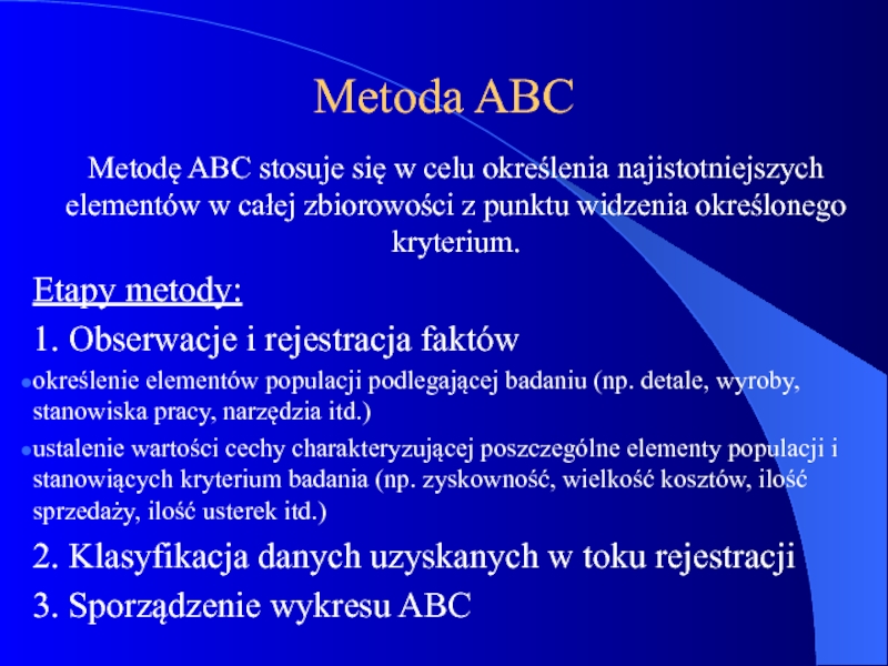 Metodę ABC stosuje się w celu określenia najistotniejszych elementów