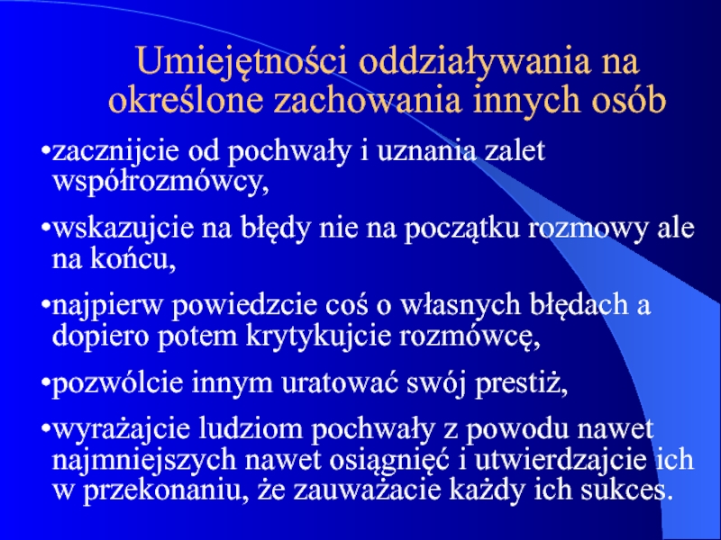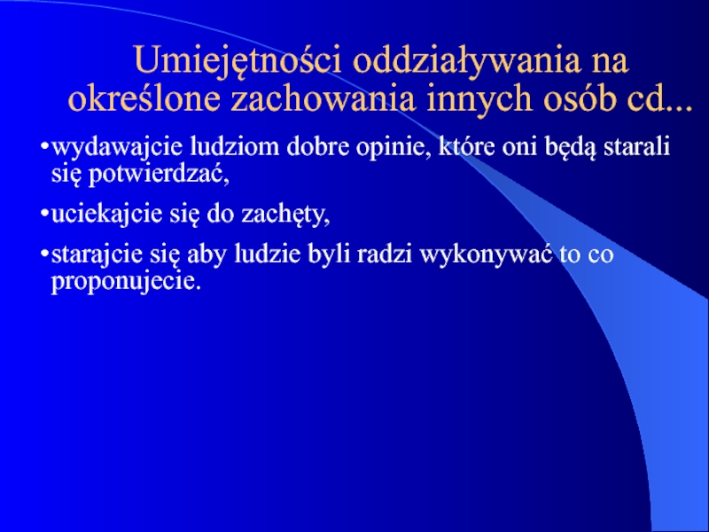 Слайд 16Umiejętności oddziaływania na określone zachowania innych osób cd...