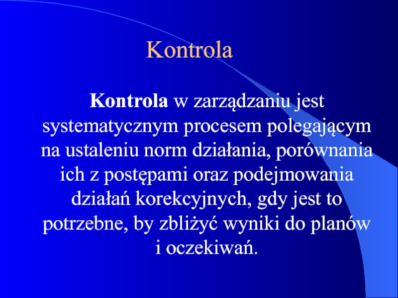 Kontrola w zarządzaniu jest systematycznym procesem polegającym na ustaleniu norm