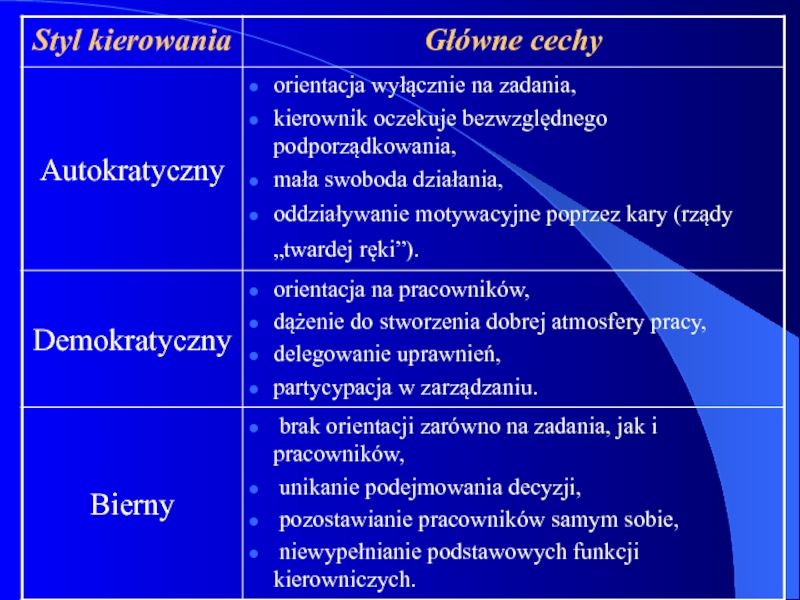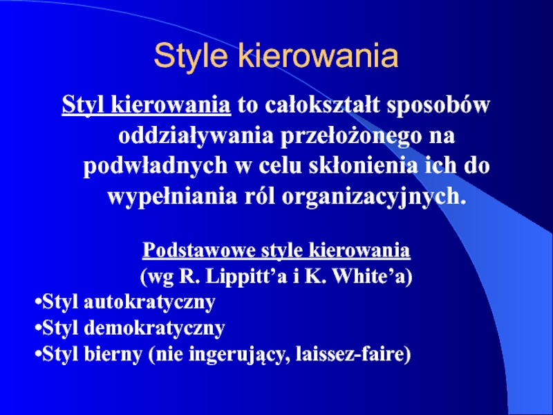 Styl kierowania to całokształt sposobów oddziaływania przełożonego na podwładnych