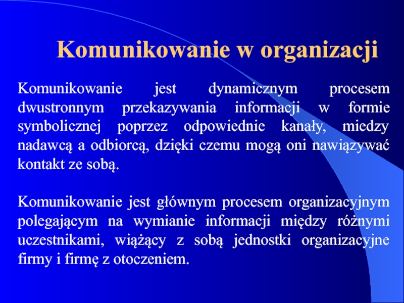 Komunikowanie jest głównym procesem organizacyjnym polegającym na wymianie informacji między różnymi uczestnikami, wiążący z sobą jednostki organizacyjne firmy i firmę z otoczeniem.