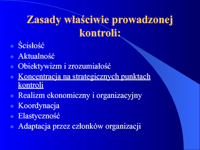 Слайд 23Zasady właściwie prowadzonej kontroli: