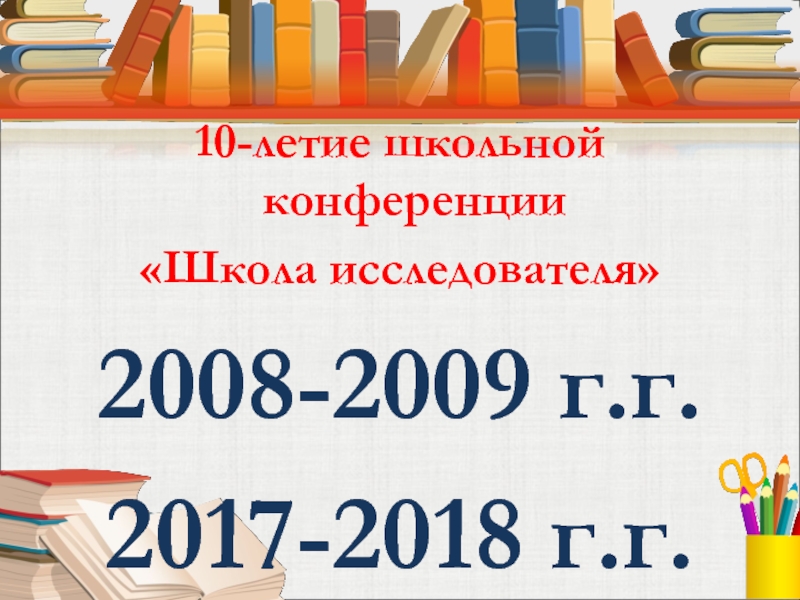 10-летие школьной конференции «Школа исследователя»2008-2009 г.г.2017-2018 г.г.