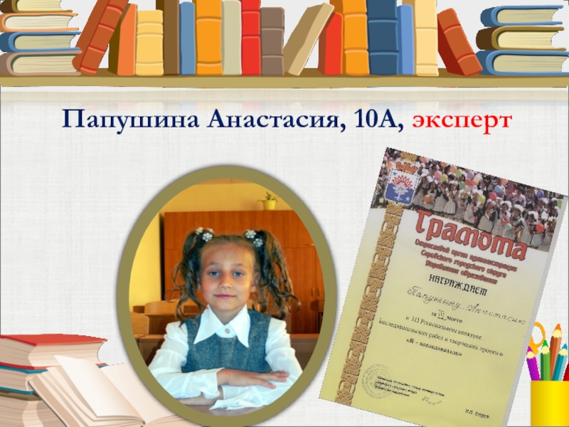 Слайд 28Папушина Анастасия, 10А, эксперт