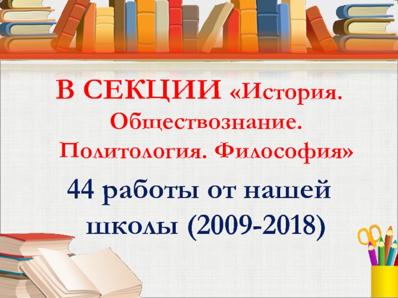 В СЕКЦИИ «История. Обществознание. Политология. Философия»44 работы от нашей школы (2009-2018)