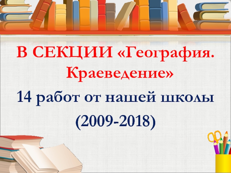 В СЕКЦИИ «География. Краеведение»14 работ от нашей школы(2009-2018)
