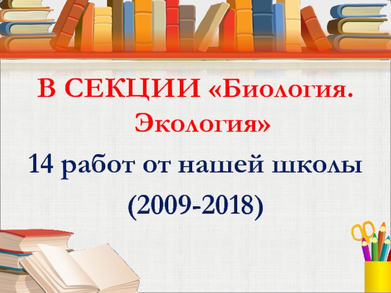 В СЕКЦИИ «Биология. Экология»14 работ от нашей школы(2009-2018)