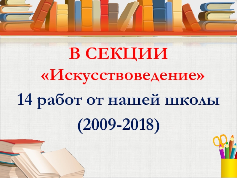 В СЕКЦИИ «Искусствоведение»14 работ от нашей школы(2009-2018)