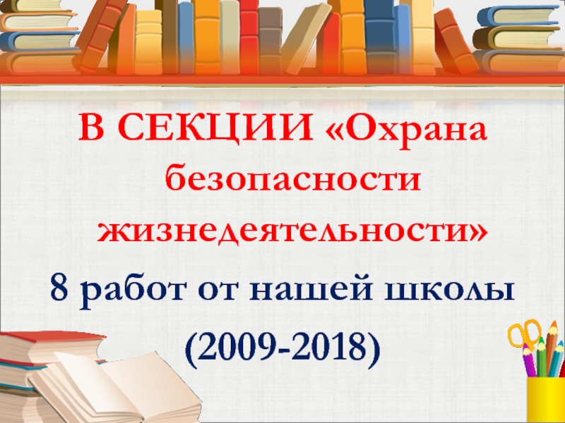 В СЕКЦИИ «Охрана безопасности жизнедеятельности»8 работ от нашей школы(2009-2018)