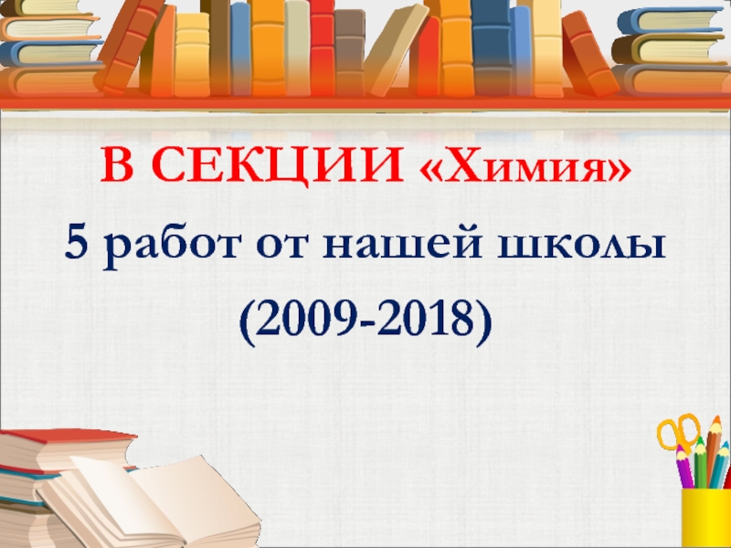 В СЕКЦИИ «Химия»5 работ от нашей школы(2009-2018)