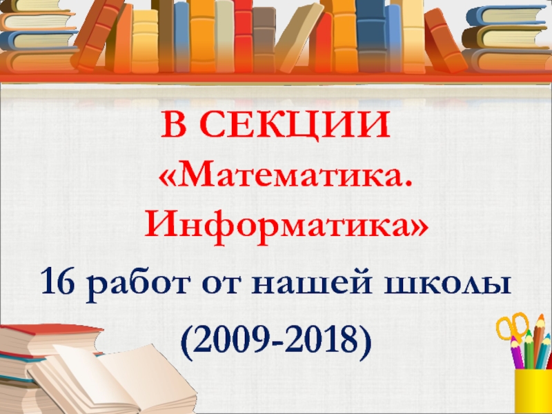 В СЕКЦИИ «Математика. Информатика»16 работ от нашей школы(2009-2018)