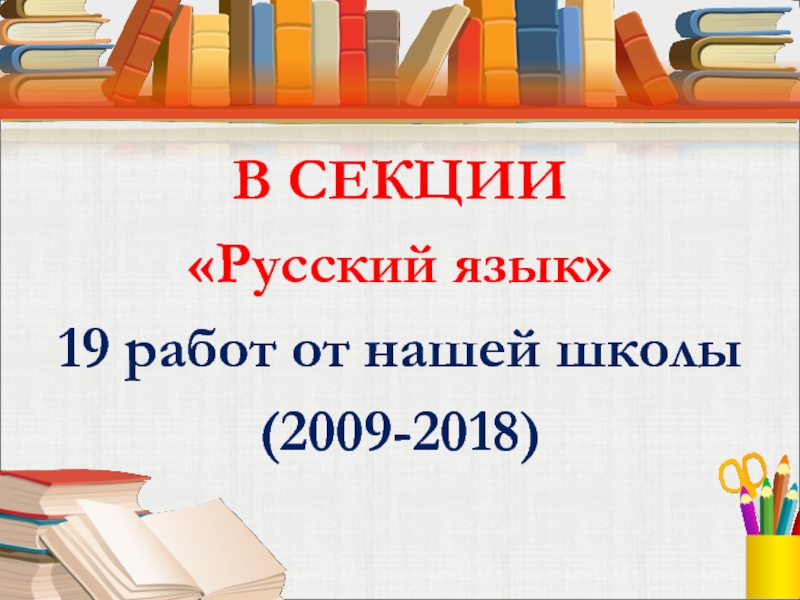 В СЕКЦИИ «Русский язык»19 работ от нашей школы(2009-2018)