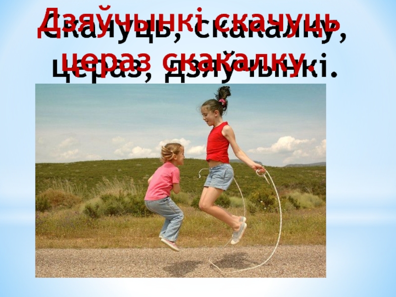 Слайд 14Скачуць, скакалку, цераз, дзяўчынкі.