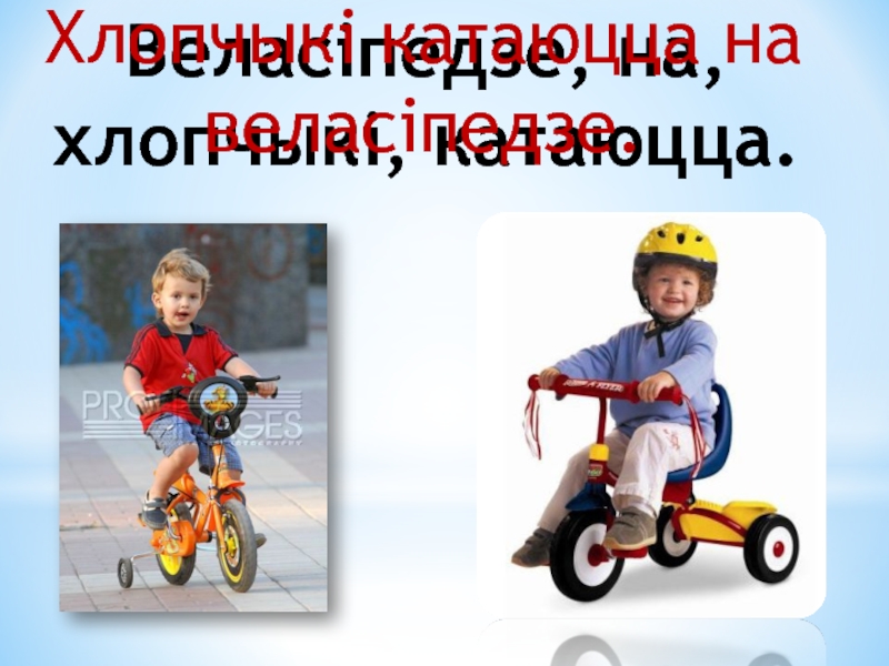 Слайд 13Веласіпедзе, на, хлопчыкі, катаюцца.