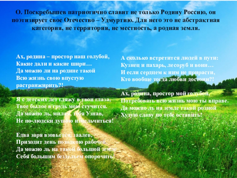 Ах, родина – простор наш голубой,