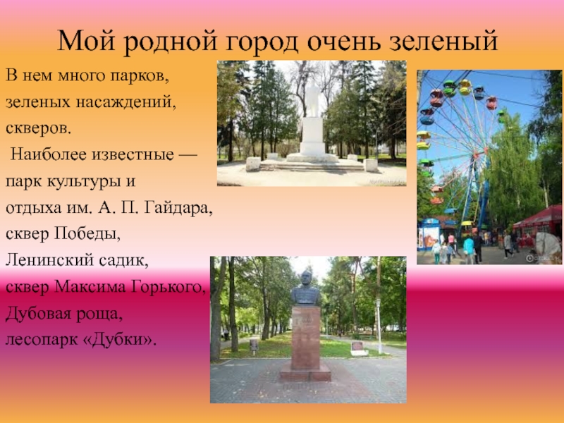 Слайд 9Мой родной город очень зеленый