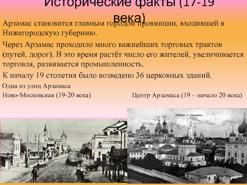 Ново-Московская (19-20 века) Центр Арзамаса (19 – начало 20 века)