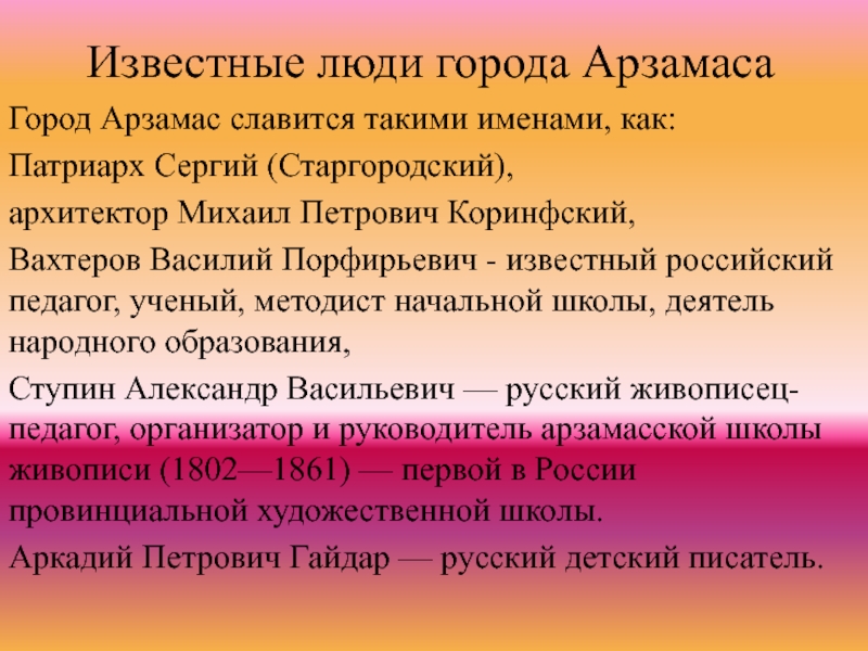 Слайд 20Известные люди города Арзамаса