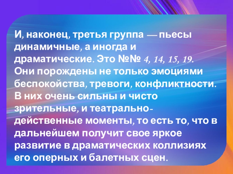 Слайд 8И, наконец, третья группа — пьесы динамичные, а иногда и