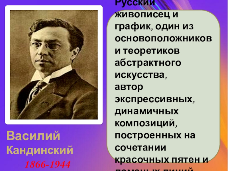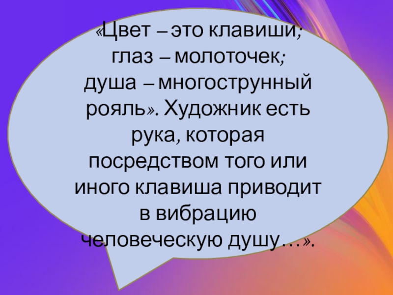 Слайд 13Особое место в создании художественного впечатления Кандинский отводил цвету. Краски