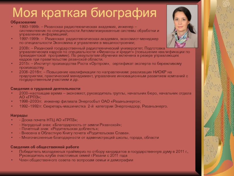 1993-1998г. – Рязанская радиотехническая академия, инженер – системотехник по специальности Автоматизированные системы обработки и управления информацией;